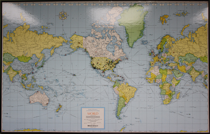 Our first international order came in the very first year we did business. We shipped a supply of Sharpie Tungsten Grinders and some specialty TIG welding torches to a distributor in Japan. Since then, we’ve shipped to all kinds of customers all over the world — and we keep track, pinning each spot on the map prominently displayed in our conference room: